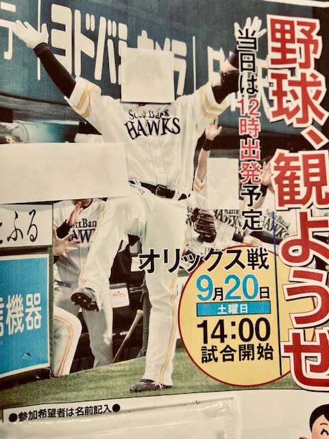 プロ野球 ソフトバンクの観戦に行きます! 未分類 2025.09.20 2025.09.10レクレーションで優勝間近のソフトバンクの観戦に行きます!みんな楽しみにしています、ユニフォームももらえるようでワクワクしています。